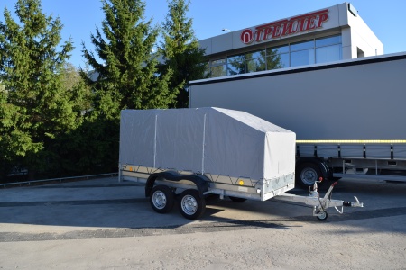 Двухосный прицеп 3,5х1,5 рес +- с тормозной системой инерционного типа с автоматом заднего хода на рессорной подвеске.